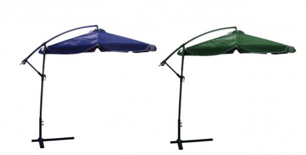 Ombrellone suspenso com 2,50 metros diâmetro.Armação em aço, cobertura em poliéster, lavável.Possui sistema de ventilação.Sistema de acionamento a manivela, fazendo com que a cobertura fique exposta em vários angulos, tornando a sombra maior.